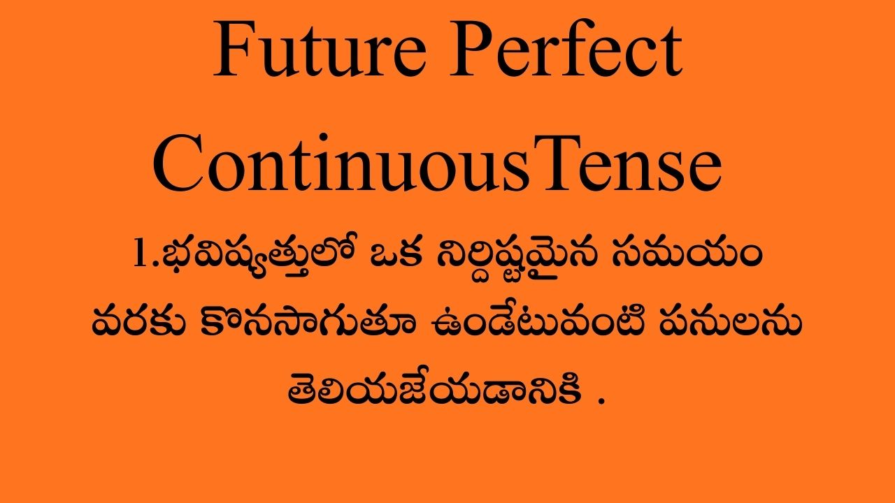 భవిష్యత్తులో ఒక నిర్దిష్టమైన సమయం వరకు కొనసాగుతూ ఉండేటువంటి పనులను Future perfect continuous tense లో తెలియచేస్తారు