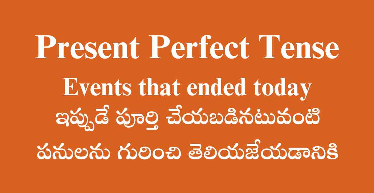 ఒక పని గతంలో ఎప్పుడైనా ప్రారంభించవచ్చు లేదా ఆ పనిని ఈ రోజే ప్రారంభించవచ్చు కానీ ఆ పనిని ఇప్పుడే ముగించినప్పుడు దానిని ఈPresent perfect Tense లో తెలియజేస్తారు