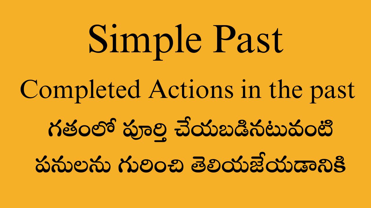 గతంలో పూర్తి చేయబడినటువంటి పనులను గురించి తెలియజేయడానికి Simple past tense ని ఉపయోగిస్తారు