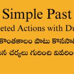 | 5.He was reading a book while waiting for the bus. | బస్ కోసం వేచి చూస్తూ ఉండగా అతడు పుస్తకం చదువుతూ ఉండినాడు. |