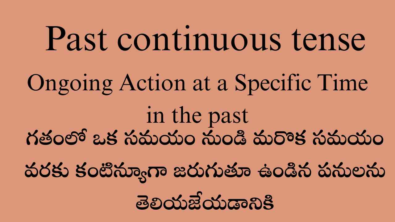 Main Meaning : గతంలో ఒక సమయం నుండి మరొక సమయం వరకు కంటిన్యూగా జరుగుతూ ఉండిన కార్యకలాపాలను వివరించడానికి, ఈ Past continuous tense ని ఉపయోగిస్తారు.