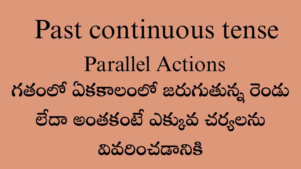 గతంలో ఏకకాలంలో జరుగుతున్న రెండు లేదా అంతకంటే ఎక్కువ చర్యలను వివరించడానికి.ఈ Past continuous tense ఉపయోగిస్తారు.