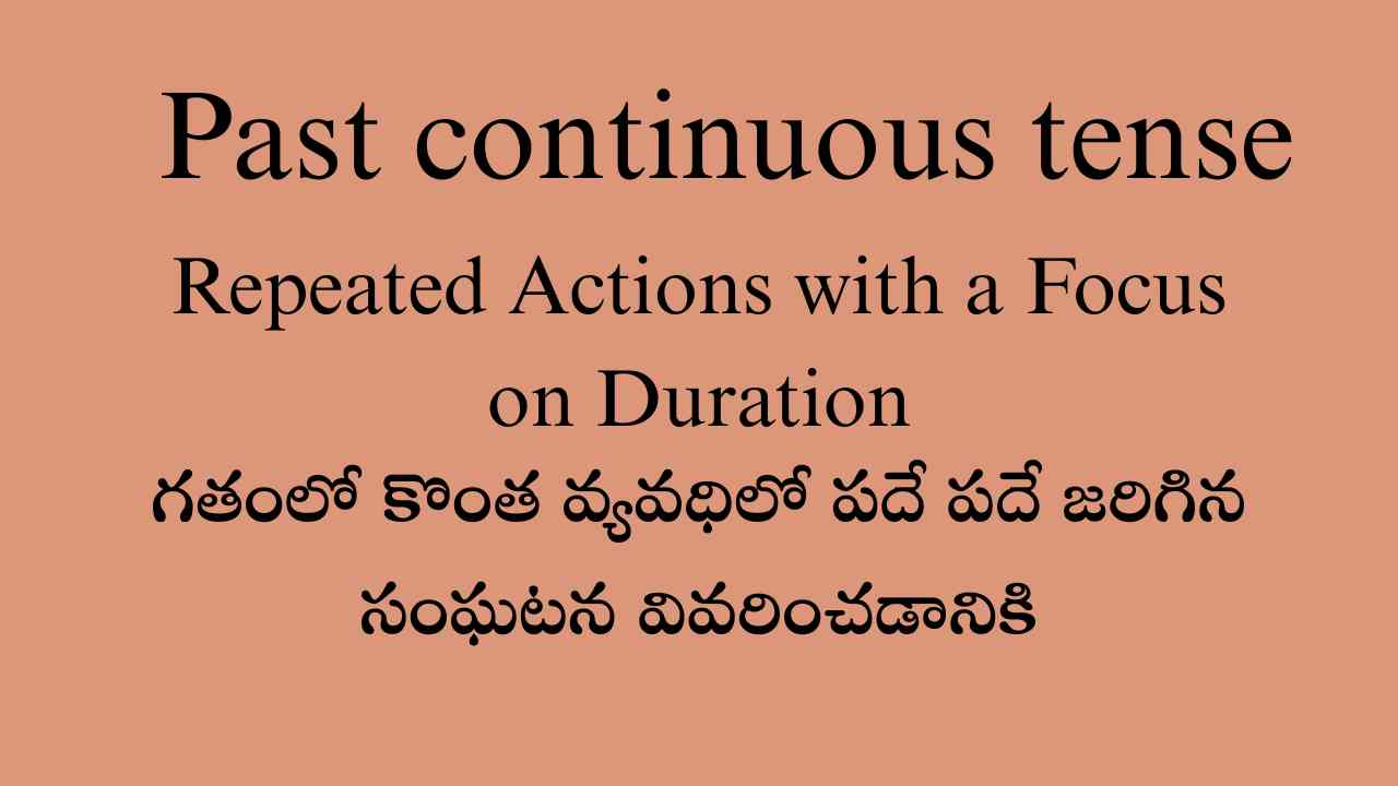 గతంలో కొంత వ్యవధిలో పదే పదే జరుగుతున్న చర్యలను వివరించడానికి కూడా ఈ Past continuous tense ని ఉపయోగిస్తారు.