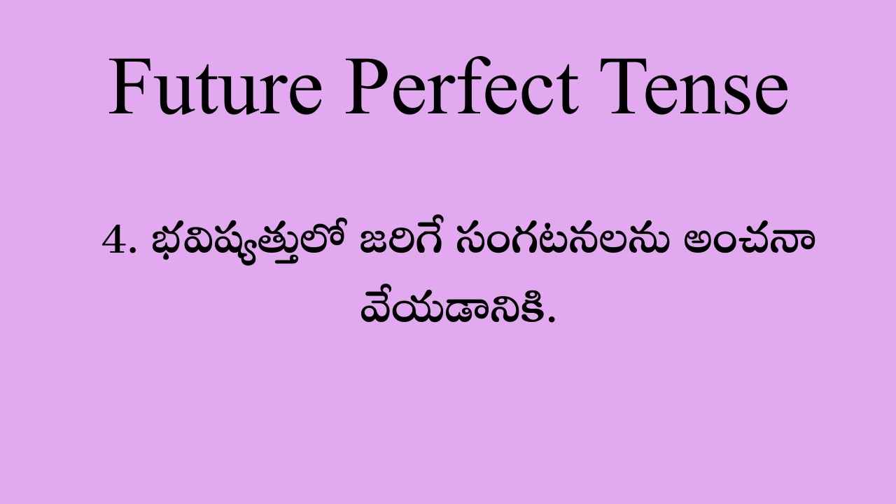 భవిష్యత్ విజయాలు లేదా సంఘటనల గురించి అధికారిక లేదా మర్యాదపూర్వక అంచనాలు చేయడానికి కూడా Future perfect tense ఉపయోగిస్తారు.